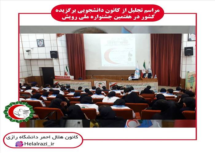 در این مراسم مختار اسدیان معاون امور جوانان جمعیت هلال احمر استان کرمانشاه ضمن بیان تشکر و تقدیر از عملکرد کانون هلال احمر دانشگاه رازی افزود: هفتمین جشنواره ملی رویش به میزبانی دانشگاه تربیت مدرس برگزار شد که کانون دانشجویی هلال احمر دانشگاه رازی کرمانشاه به عنوان کانون برگزیده در حوزه اجتماعی انتخاب شد. هفتمین جشنواره ملی رویش ویژه دستاوردها و توانمندی‌های کانون‌های فرهنگی، هنری، دینی و اجتماعی دانشگاه‌های سراسر کشور به میزبانی دانشگاه تربیت مدرس، در شهریور ماه امسال با انتخاب سه کانون دانشجویی هلال احمر به عنوان کانون برگزیده در حوزه اجتماعی برگزار شد.