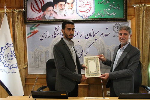 همچنین لوح سپاس از سوی سازمان بسیج دانشجویی به پاس تلاش و حمایت از اردوهای راهیان نور به دکتر محمدنبی احمدی سرپرست دانشگاه رازی اعطا گردید.