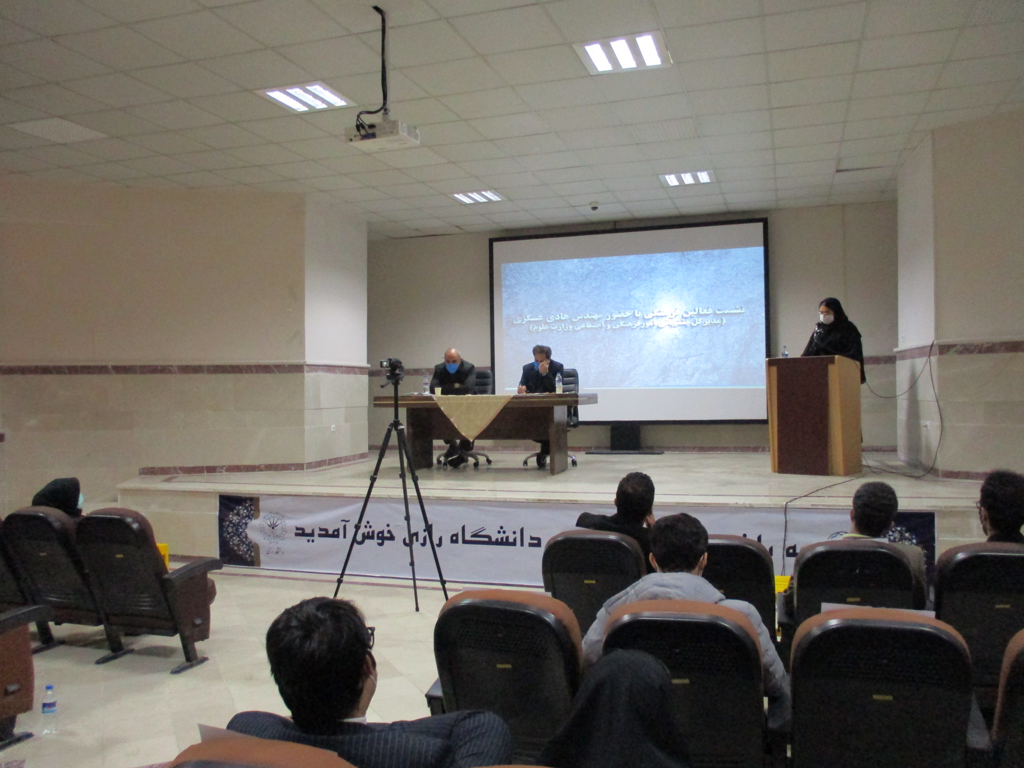 نشست نمایندگان تشکلهای دانشجویی دانشگاه رازی با مهندس محمدهادی عسکری مدیر پشتیبانی فرهنگی و اجتماعی وزارت علوم، تحقیقات و فناوری روز دوشنبه 29 دی ماه 1399 در آمفی تئاتر باشگاه دانشجویان دانشگاه برگزار شد.