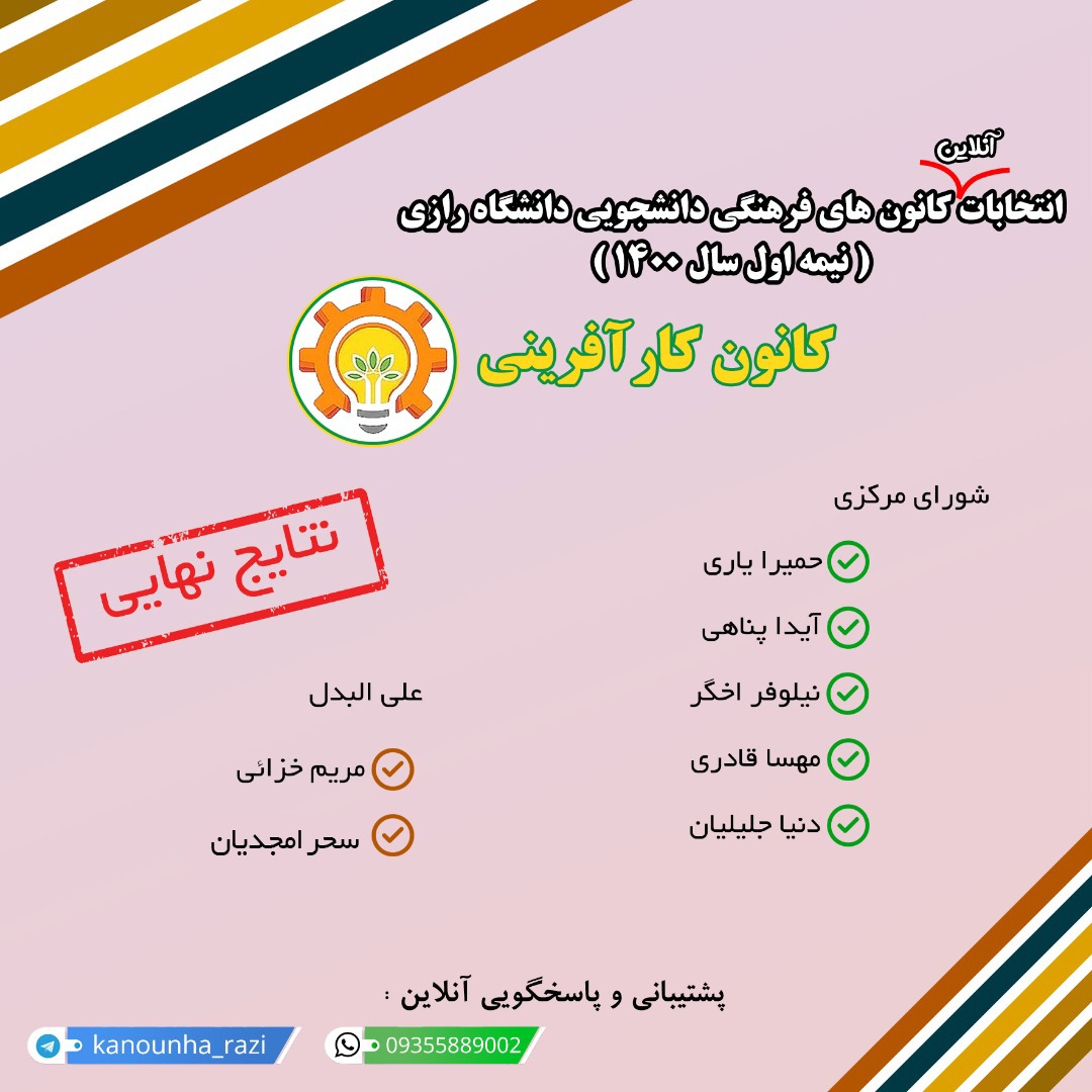 اعلام نتایج نهایی انتخابات کانونهای فرهنگی دانشگاه رازی - معاونت فرهنگی