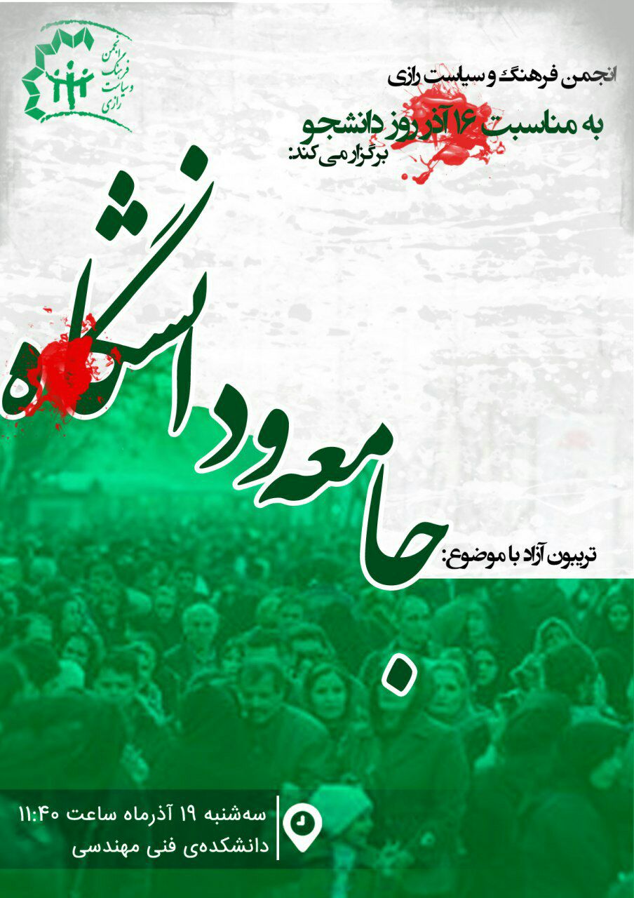 به مناسبت 16 آذر روز دانشجو، انجمن فرهنگ و سیاست دانشگاه رازی تربون آزاد با موضوع «جامعه و دانشگاه» را برگزار می نماید.