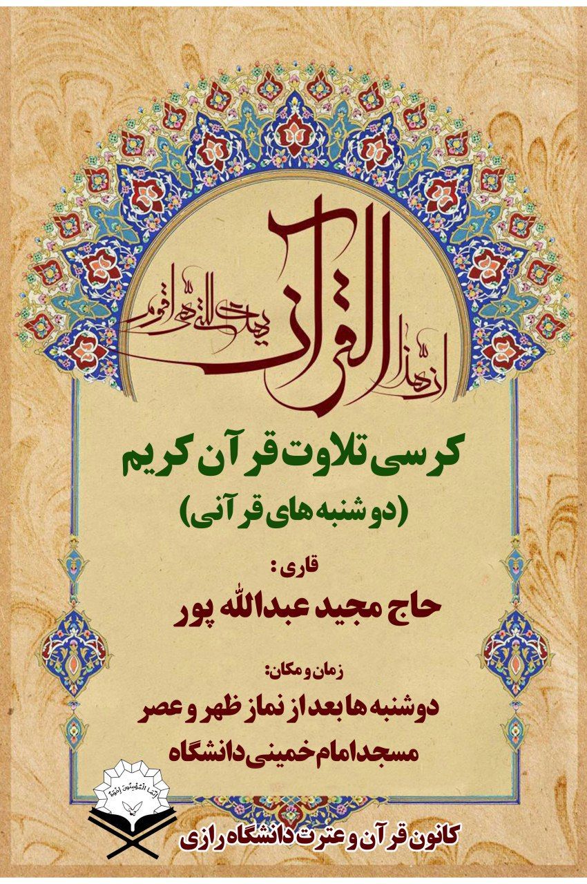 کانون قرآن و عترت دانشگاه رازی کرسی تلاوت قرآن کریم را با حضور قاریان مطرح استانی و کشوری دوشنبه های هر هفته برگزار می کند.