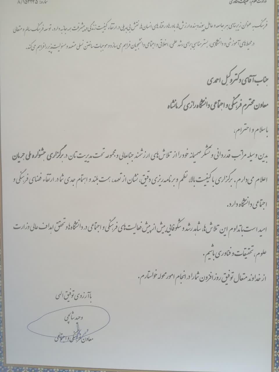 معاون محترم فرهنگی و اجتماعی دانشگاه رازی کرمانشاه