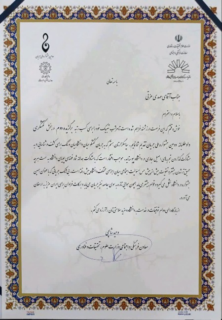 سید محمدعلی بلادی‌نژاد – بخش بین‌الملل، با عنوان « دیپلماسی علمی»، رتبه شایسته تقدیر