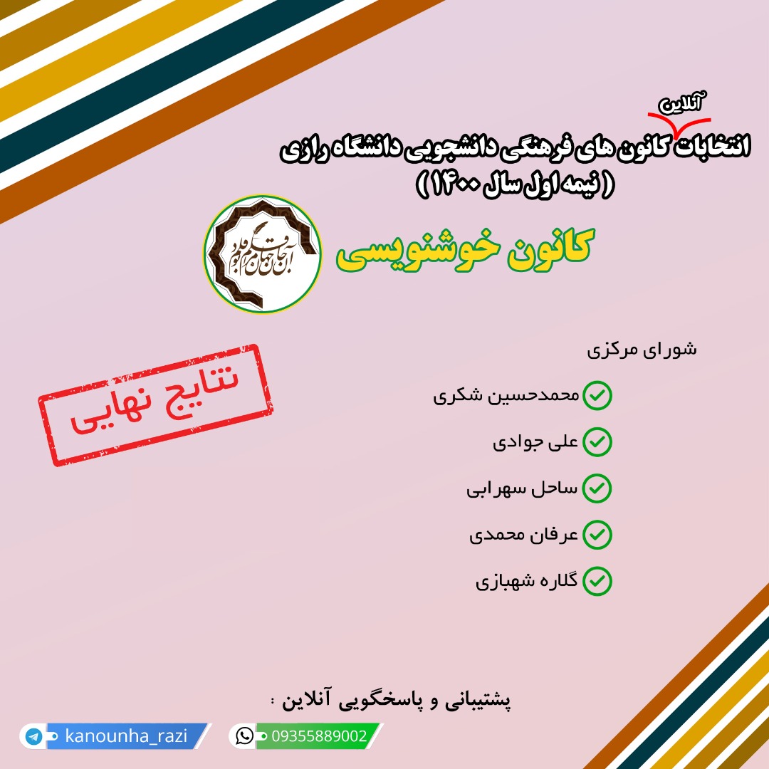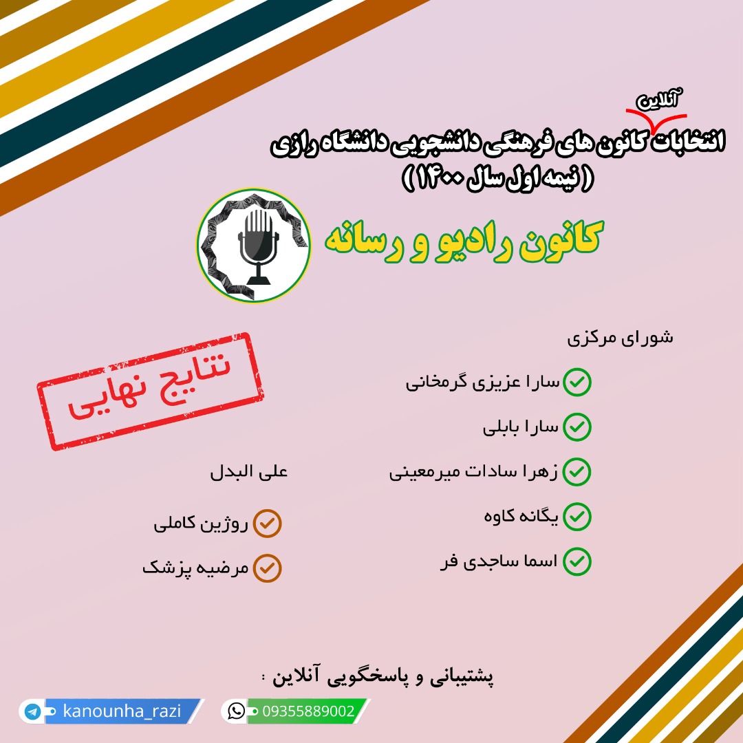 اعلام نتایج نهایی انتخابات کانونهای فرهنگی دانشگاه رازی - معاونت فرهنگی