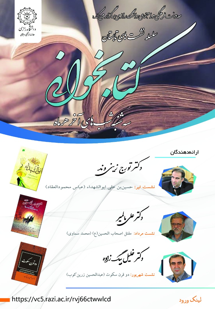 معاونت فرهنگی و اجتماعی دانشگاه رازی در راستای ترویج فرهنگ مطالعه، برگزاری نشستهای ماهیانۀ کتابخوانی (آخرین سهشنبۀ هر ماه) را از ابتدای سال 1400 آغاز کردهاست و بدینوسیله جدول نشستهای کتابخوانی فصل تابستان را اعلام میدارد: