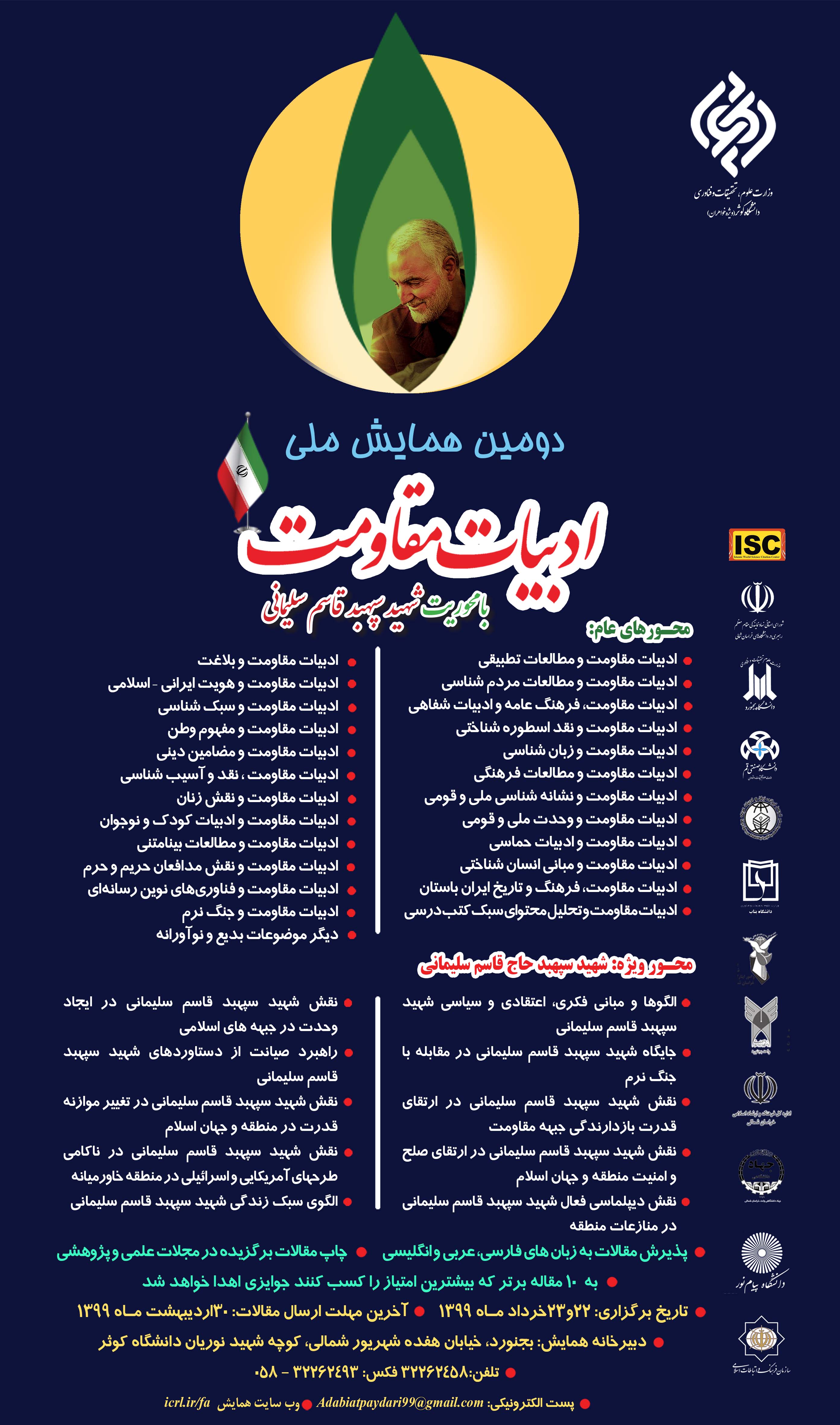 دومین همایش ملی ادبیات مقاومت با محور ویژه سردار شهید سپهبد قاسم سلیمانی، بهار 1399 به میزبانی دانشگاه کوثر بجنورد برگزار میشود.